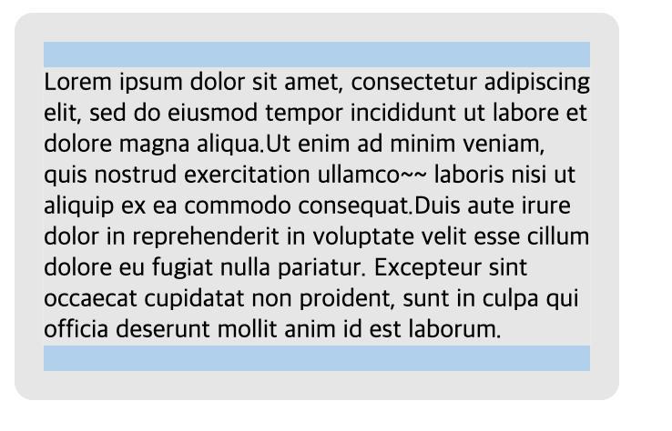네 번째 줄에서 'ullamco~~' 다음에 띄어쓰기, 탭, 엔터를 쳤지만 띄어쓰기 하나로 처리되었다. 또한 회색 영역을 넘어가지 않고 줄이 자동으로 바뀌는 것을 볼 수 있다.