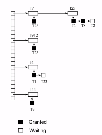request of lock, request of unlock에 따라 테이블의 데이터별 큐를 관리를 하게 된다.