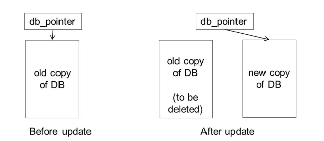 db 데이터를 업데이트하면 page를 추가하여 새로운 페이지에 업데이트하는 값을 쓰는 방식이다. before update가 p1~p3이 있었고 p2를 업데이트 한다고 하면 p2에 데이터를 업데이트하지 않고 새로운 페이지 p4를 만들어서 업데이트 하는 방식이다. 대용량의 db에서는 사용하기 힘든 방식이다.