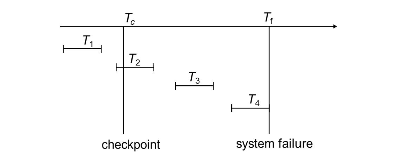 따라서, Tf 시점에 failure가 발생하면 T2, T3은 redo를 하고 T4는 undo 해야한다.