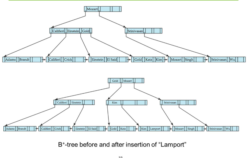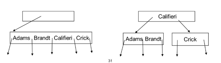 non-leaf node를 splitting할 때 key값 하나를 올려 보내고 node를 splitting 한다.