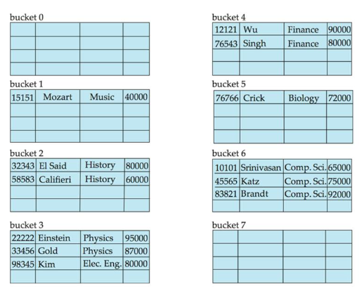 bucket에 record들이 전부 저장되어 있고 key에 대한 검색으로 해당 버킷을 찾아가는 방식에 대해 살펴보았다. 이 때 이 bucket들의 모음을 hashfile이라고 한다.