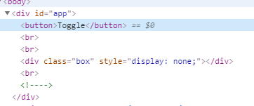Vue에서 정의된 show data에 따라서 박스를 토글시키는 예제이다.
