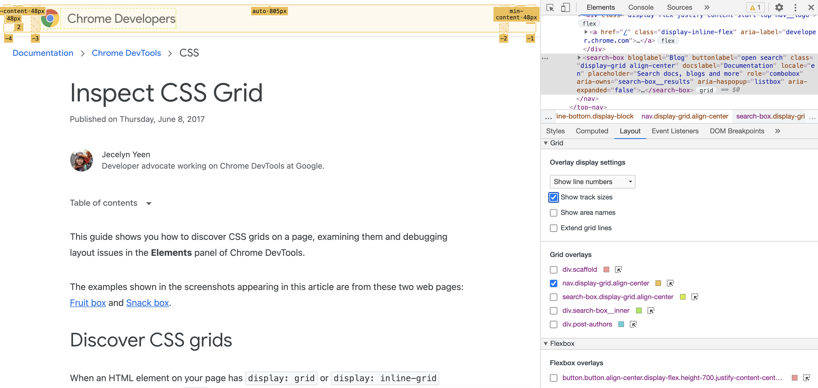 Styles의 Layout 탭에 대해서 살펴보자 Layout 탭에는 grid와 flex로 선언된 엘리먼트가 나타난다.