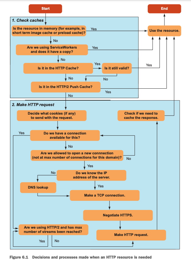Before HTTP/2, HTTP was a single request-and-response protocol, so there was no need for prioritization within the protocol. The client (typically, the web browser) decided the priority outside of HTTP by deciding what order to send the messages in, using the limited number of HTTP/1 connections (typically, six). This prioritization usually required requesting critical resources (HTML, render blocking CSS, and critical JavaScript) first and requesting non-blocking items (such as images and asynchronous JavaScript) later. Requests were queued, awaiting a free HTTP/1 connection, and the queuing, managed by the browser, decided the priority.