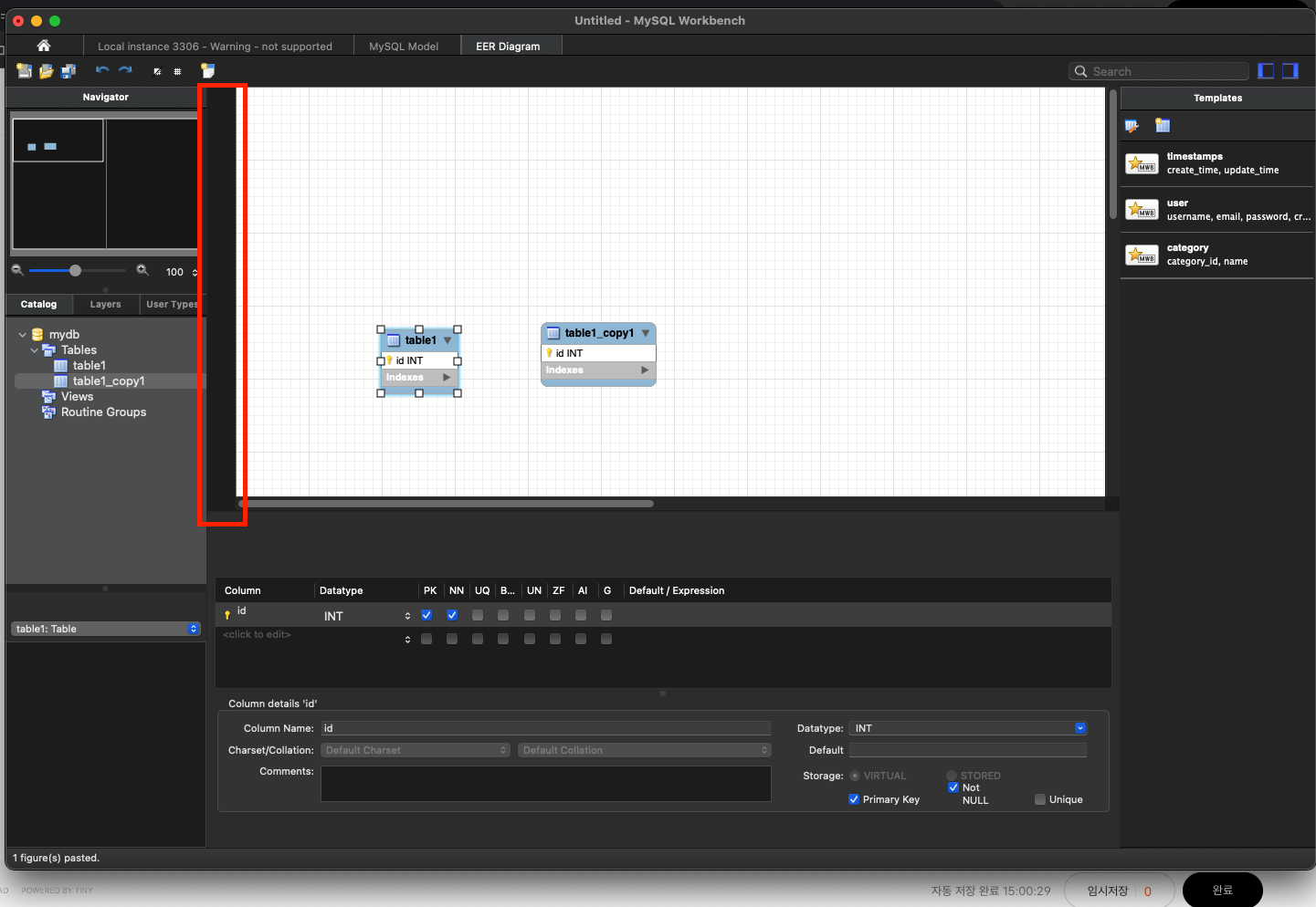 mysql workbench File-NewModel 기능을 통해 erd 화면으로 들어가면 아래처럼 보여야할 아이콘들이 안보인다.