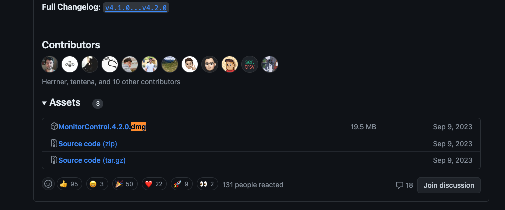 https://github.com/MonitorControl/MonitorControl/releases 로 우선 접속한다.