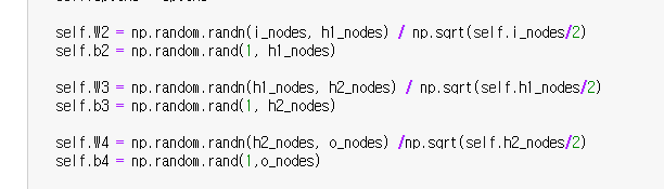 xavier/he initialization 구현한 코드는 다음과 같다.